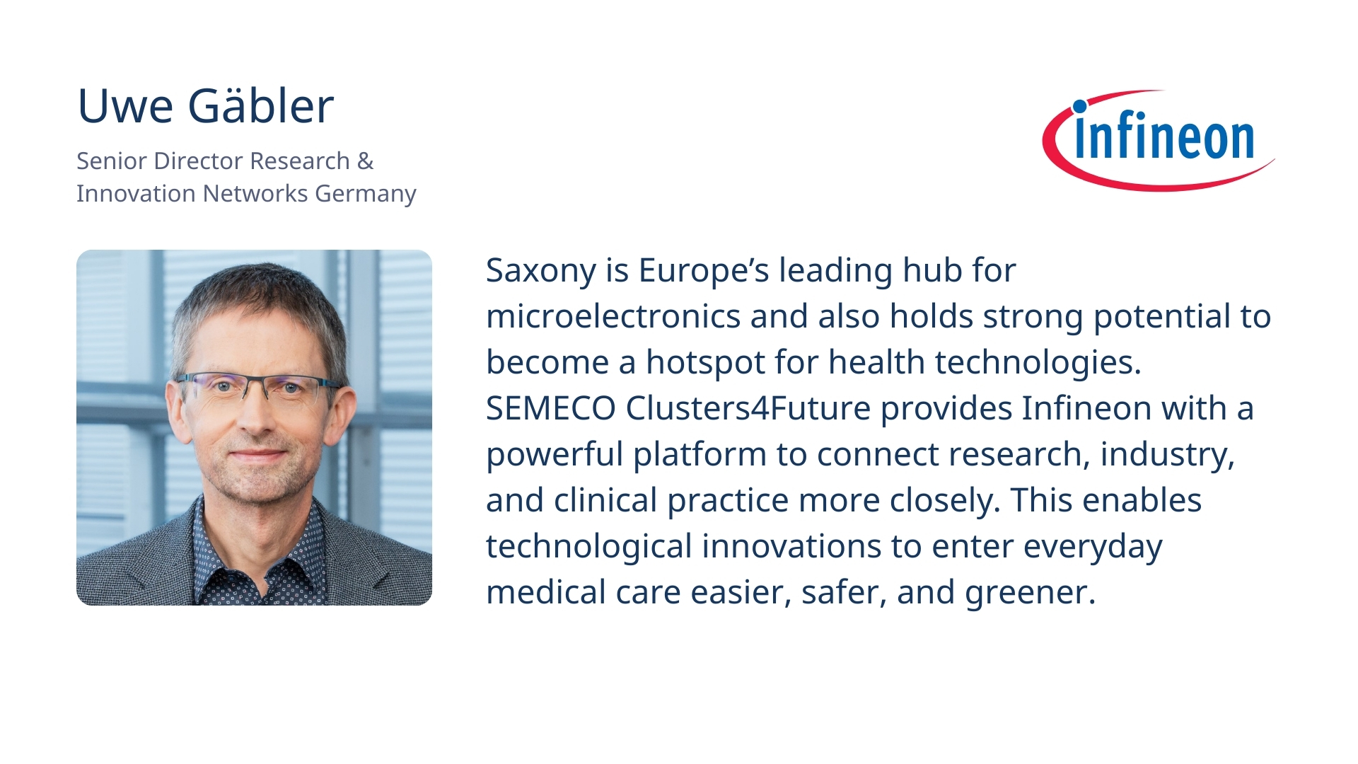 With the Else Kröner Fresenius Center for Digital Health, the 5G++Lab Germany and the Barkhausen Institut, the SEMECO future cluster around TUD Dresden University of Technology offers ideal conditions for innovative and sustainable collaboration at the leading European location for microelectronics, communication technology and explainable AI – i.e. artificial intelligence whose results can be understood and interpreted by humans. As part of the Clusters4Future initiative, an ecosystem is being created that taps into the innovation and future potential of the semiconductor and microsystems technology industry for medical technology, brings together justified regulatory and safety requirements and develops applications for the market.